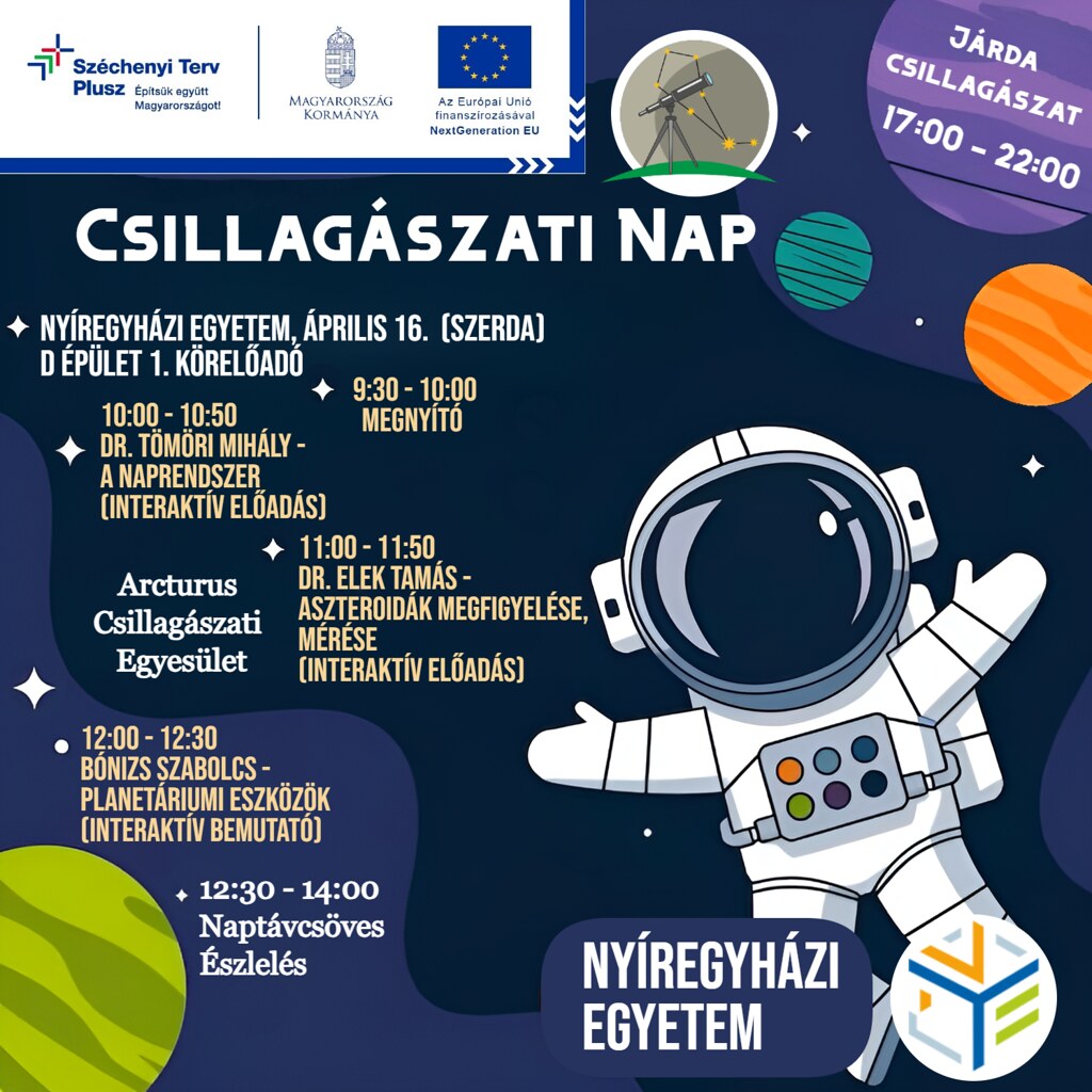Több mint 70 érdekes és izgalmas program várja az érdeklődőket a Nyíregyházi Egyetemen. Az intézményben az idén is megrendezik a nagy sikerű Kutatók éjszakáját, melynek keretében járdacsillagászat, elektronmikroszkópos vizsgálat, csípőspaprika-kóstolás, vagy éppen repülőszimulátor is várja a résztvevőket. A programsorozat célja, hogy közérthetően hozza közel a tudományt minden korosztályhoz.